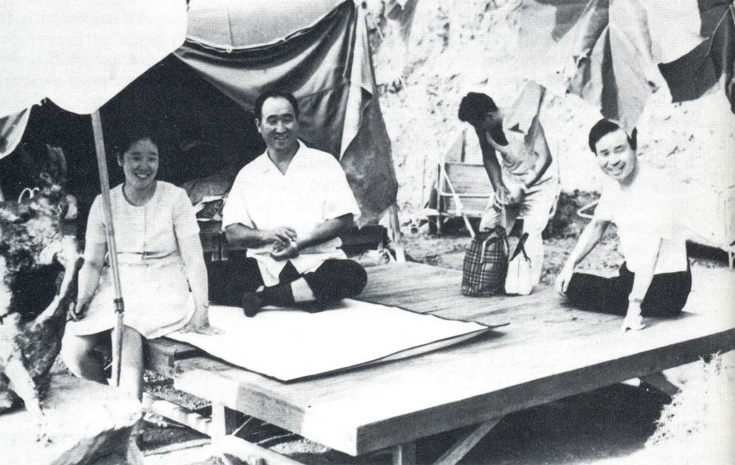 Father, Mother, and several of the early members set up camp on the shores of Chung Pyung Lake.