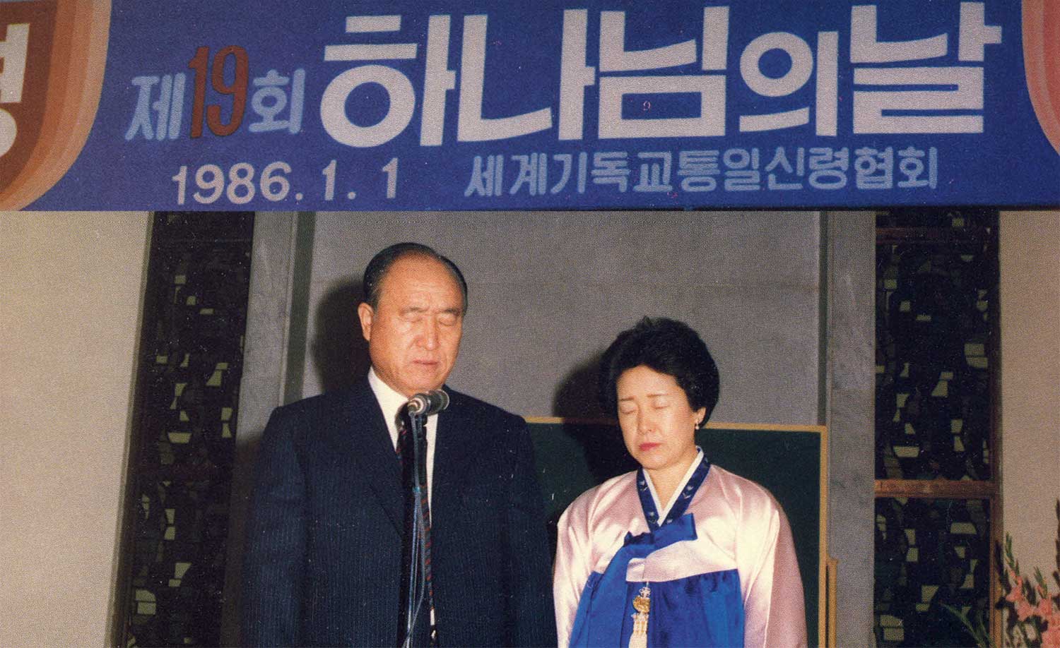 Father, with our heads bowed low, we again remember that You have been faithfully traveling this 40-year historical course of suffering by letting us pioneer the true way of fighting against the opposing forces, on the levels of the individual, family, tribe, nation, and world. This morning, at the beginning of the year 1986, we sincerely ask you to forgive all the sins committed up to now by mankind and to have pity on and accept these sons and daughters who stand here in the name of True Parents.