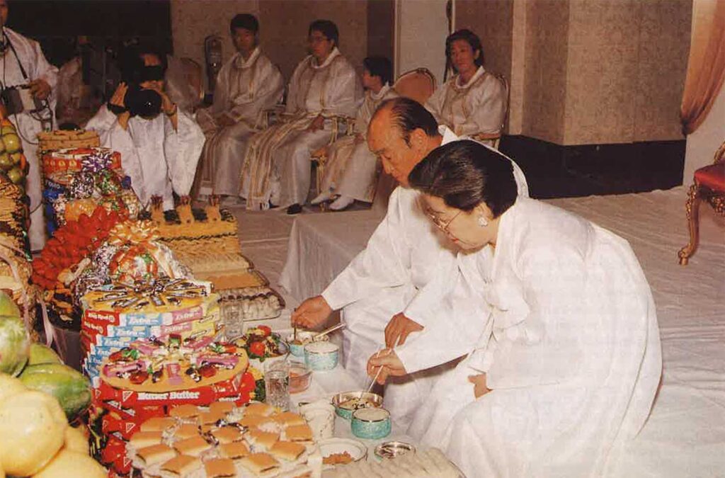 On my 77th birthday, I am giving you this clear explanation. Before you celebrate this kind of holy ceremony, you should feel like a sinner of sinners, shedding tears, sweat and blood in order to prepare for this kind of holy ceremony. This is the most serious moment, because if you are not properly prepared for this ceremony you will be attacked by Satan in some way. The law of indemnity still exists, and this law applies even to my life. Of course, it applies to your life too. When we tum 360 degrees, we shouldn’t have any speck on our conscience; it should be crystal clear.