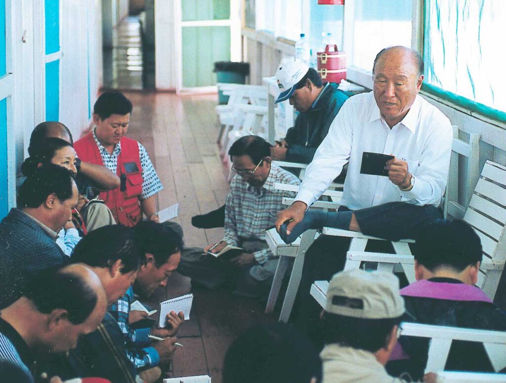 Centering on the victorious foundation of liberation that was established on May 15 last year (1998), I was able to declare the age of liberation for 120 million on June 13, 1998, through blessing good saints and evil murderers alike in the spirit world. Today, I have returned to this site of commemorative significance with the heart to reconnect. Father, at that time I bound all evil murderers into brotherhood relationships, and now they are raised on the world level. For this, they will receive Sang Hun Lee’s order which is given by God, today, to unite with all Unification Church members on this earth. By doing so, I can officially declare the liberation of Satan, the liberation of God, and the liberation of humankind in the name of True Parents. Father, I am truly grateful for this historical time.
