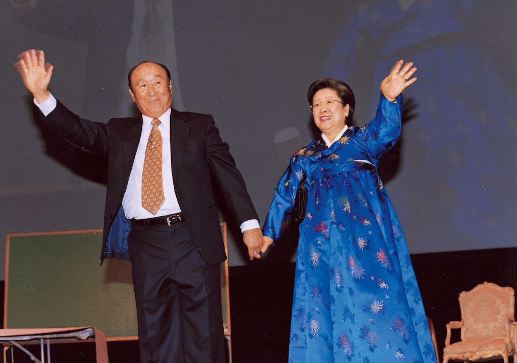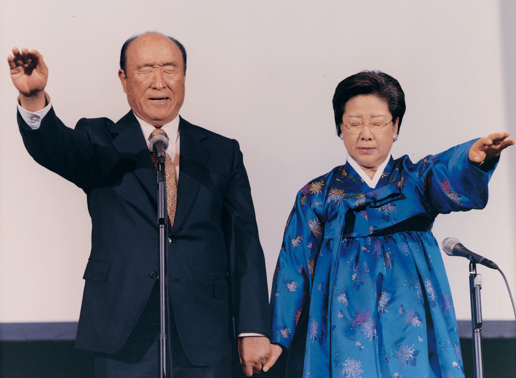 I earnestly pray and hope with countless cheers of Mansei that all the blessed families in heaven and on earth and even the descendants scattered all over the world can become united as one and settle as one heart and body before heaven. I bless and pray all these things in the names of the True Parents. Amen. Amen. Amen.