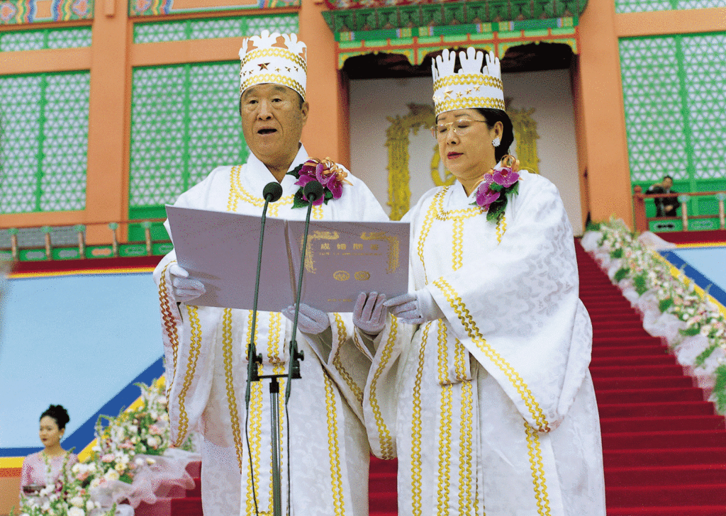 The Unification Church started such a ceremony on the trans-international and trans-national levels of the fallen world, and it has been forty years since we commenced the family blessing through which all our ancestors in the spiritual world and all the descendants on earth can plant the seed of the tradition of the original blessing throughout the individuals, families, tribes, races (peoples), nations, world, and cosmos. We are grateful to You that beyond the world standard so far established and through the unified suffering of the heavenly world and earthly world for the sake of the blessing, You have enabled us to welcome the world of blessing where the heavenly parents and children can create the realm of heavenly lineage by connecting to the true love, true life, and true lineage of the True Parents and God.