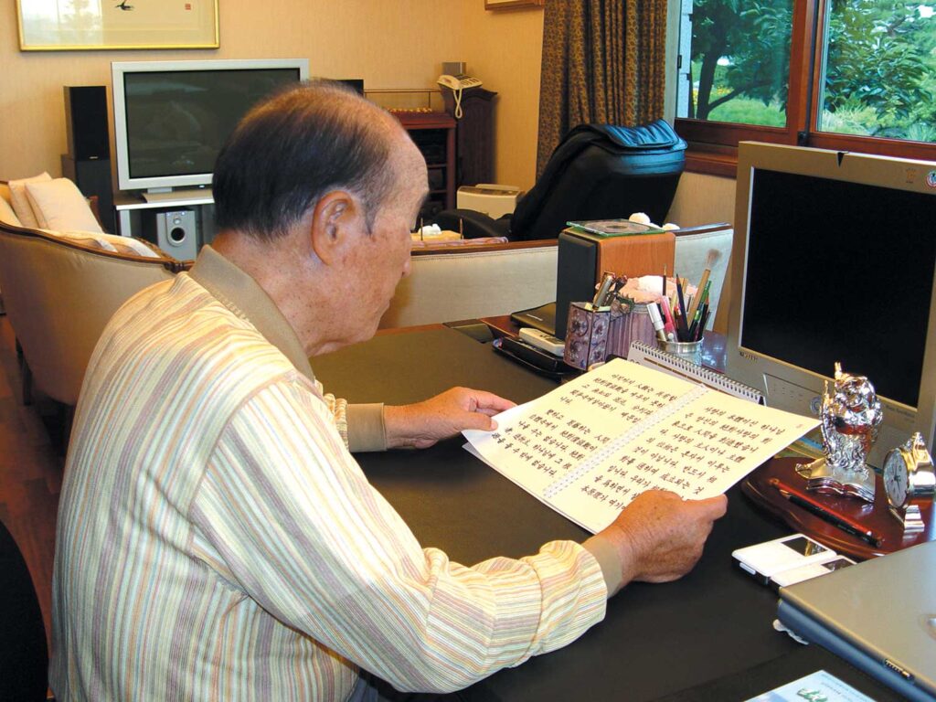 Distinguished guests, renowned leaders of Korea, I have been able to create a global foundation that transcends race, religion and nationality in 191 countries in my lifetime–despite constant misunderstanding and persecution–and have been recognized as the true parent of mankind and king of peace by God, the spiritual world and the earth. The reason for this is that I have practiced the heavenly way of true love that calls one to be the first to give, and to live for others. I did not ask to be made the king of peace. This title was given to me.