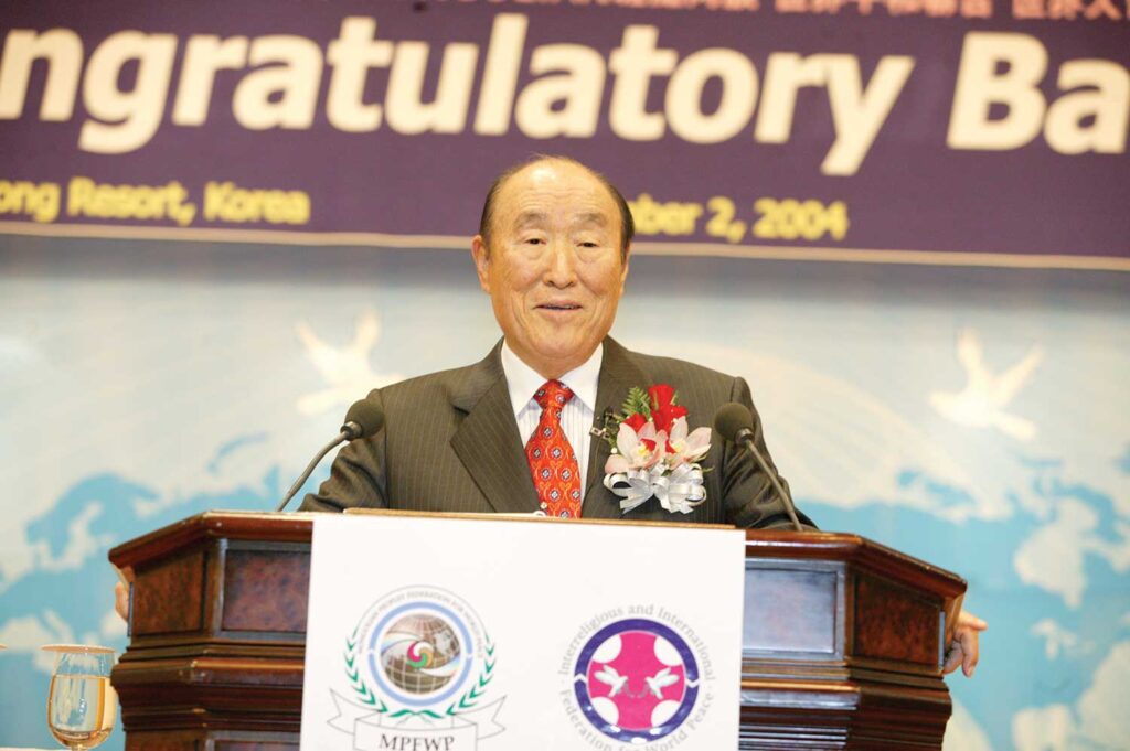 Ladies and gentlemen, I clearly understand the will of heaven as having placed me in the position of the True Parent, as ordained by Providence. As the Savior, True Parents have to fulfill their responsibility of saving the world. As the Messiah, they must fulfill the responsibility of cleansing humanity of all their sins. Through the Holy Marriage Blessing centered on true love, True Parents must cause the world to overflow with true families, who will be the new true olive trees. This fortune and destiny given me by heaven is now being fulfilled at revolutionary speed. This is clearly visible in the work being done for the establishment of God’s kingdom of Cheon Il Guk by tens of thousands of blessed families–international couples, flying high the flag of the “Interreligious and International Federation for World Peace” or under the banner of the “Mongolian Peoples’ Federation for World Peace.” They are truly the special vanguard of heaven, risking their lives for the work of God.