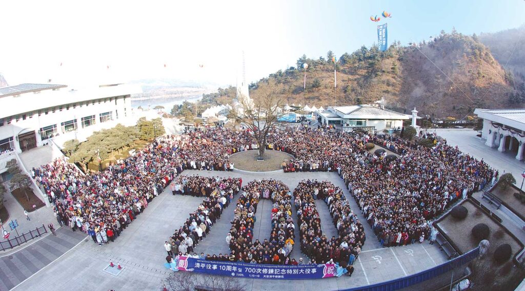 What kind of place is Cheongpyeong? “Cheong” is written with two Chinese characters, one meaning “water” and the other “the color blue.” Together they mean “vividly blue waters,” or “living surrounded by water.” “Pyeong” means “to be flat or level, wherever you go.” Bearing this in mind, the word “Cheong Pyeong” implies a level land surrounded on all sides by blue water. How many central points can this land have in it? It is illogical to suggest that there can be a Japan central point, a US central point, a Korea central point, or indeed a central point for each of the 191 member nations of the UN. There can be only one central point….