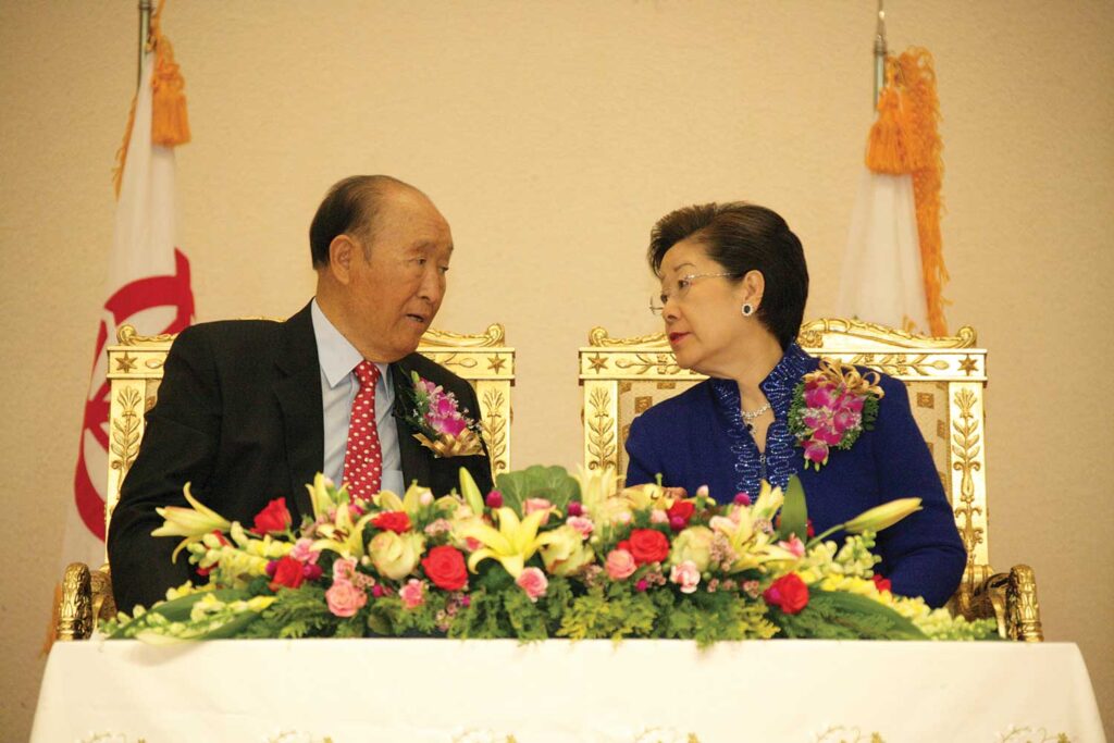 The full title of the November 21, 2006 holy day speech, an excerpt of which follows, was “God’s Model for Absoluteness, Peace and the Ideal Is the Family and Global Kingdom Upholding Absolute Sexual Morality.” Pledge Service, where Father and Mother are pictured above, was held at the Cheongpyeong training center. Father spoke afterward for more than three hours. This speech was given that afternoon at the Korea International Exhibition Center (Kintex), 80 kilometers from Cheongpyeong in the city of Goyang.