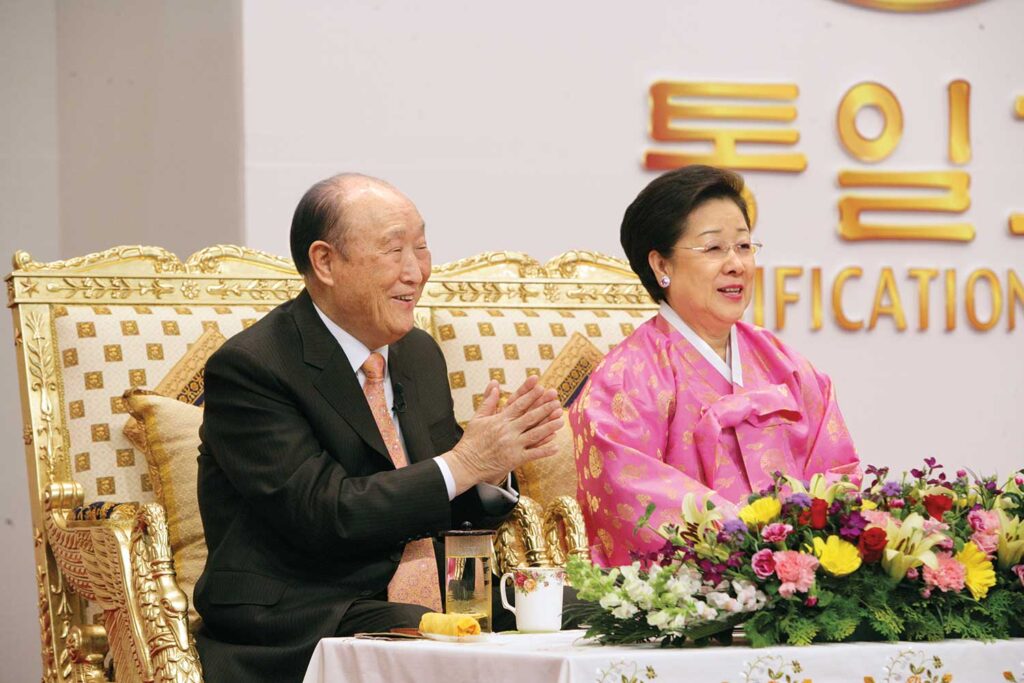 Father spoke extemporaneously for twenty minutes during the eight o’clock celebration of his ninetieth birthday (by the heavenly calendar) at Cheon Jeong Peace Palace before reading his speech, “The Sovereignty of Cheon Il Guk That Serves God Who Is Opening the Eternal and Unchanging Era of the Heavenly Calendar.” Dr. Peter Kim read the same prepared speech on True Parents’ behalf at the birthday luncheon a few hours later, and Father read it at the United Nations Headquarters in New York on March 18 at an event entitled Honoring a Legacy of Peace: A Memorial Festival of Ascension and Unity.