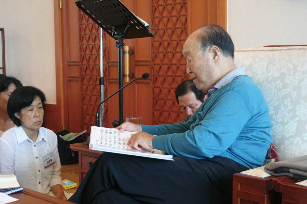 The textbooks and teaching materials have already been made. Those who have graduated from grade school can be educated, it doesn’t matter where they are. People from the United Kingdom, the United States and France are all destined to read them. The 6.5 billion people in the world can study the way to go directly to the kingdom of God through these texts…. Wherever you are, if you desire to become a citizen of the kingdom of heaven, you can study how to do so, because you have the textbooks and teaching materials…. These are the texts and teaching materials of the God of night. They are not found in the world of the God of day. None of these texts can be subtracted from the whole. This morning’s hoondokhae is the time to clarify this. What I have given you to read for hoondokhae is simple content.