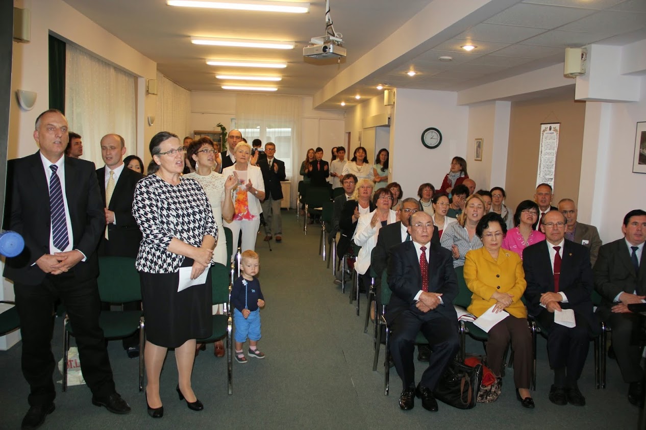Dr. Pak shared the motto and guidance of True Mother, “Forgive, Love, Unite and always be grateful”. He said, “First forgive yourselves, keep hand with your neighbor, say ‘I love you’, and then unite.” At this very moment, something amazing happened: our senior brother, who was the first missionary, arrived and joined us for the first time since many years. All brothers and sisters stood up and welcomed him with a big applause; tearful hugs were exchanged and an amazing joy and unity filled the sanctuary. It was like a miracle, not planned but guided by Heavenly Parent and True Parents. This was the absolute and unexpected highlight; Our elder brother, who started the mission in Poland 40 years ago, arrived precisely at the right moment, at the end of the offering and celebration of this forty year course.