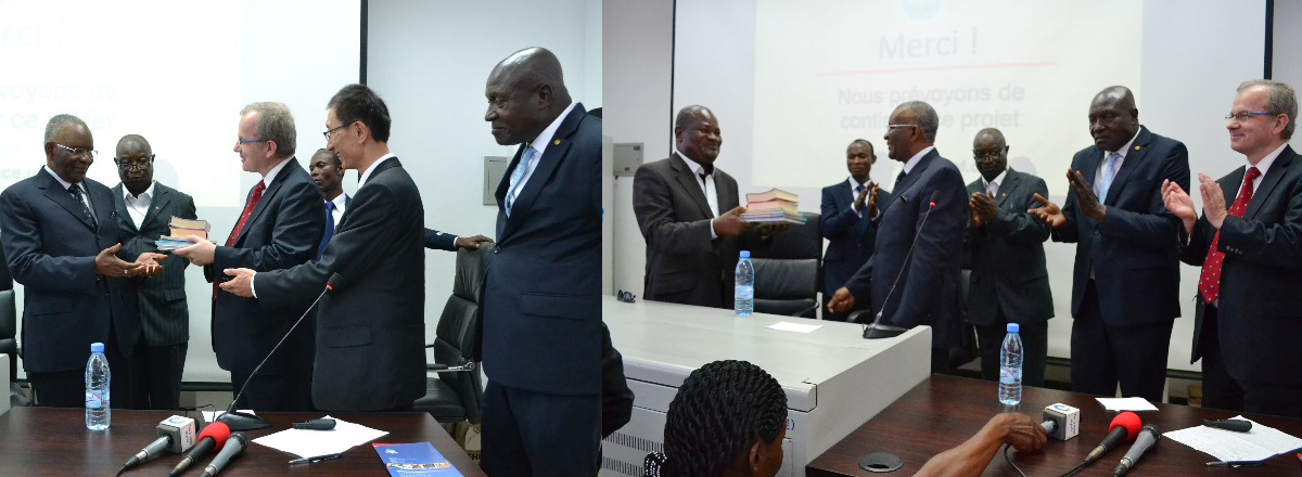 He then gave a sample of the books to H.E. Maurice Nguesso, who symbolically received the donation and turned it over to the representative of the minister of education. Mr. Jean- François Olakouara, the director of the Great University Library, then received the books and offered words of gratitude to UPF. Although primarily a university institution, he said, the library would open its doors to the larger public and function as a national level library, providing opportunities for school students of all ages and classes to gain access to the books. He encouraged other NGOs to follow the UPF example in making book donations.