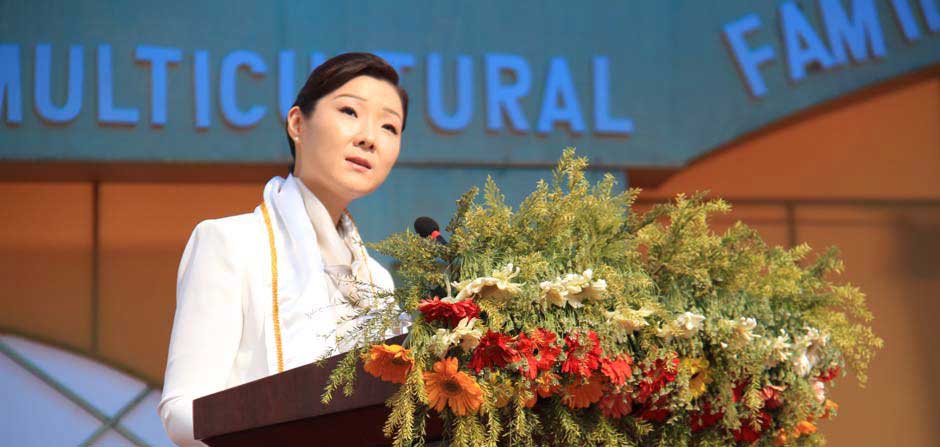 It is my distinct honor to be with all of you on this special day here in Kathmandu, Nepal. I am deeply moved by the beautiful sight of so many couples gathered for this Multicultural Family Educational Peace Festival 2015. All the couples with your white shawls… you look so noble.