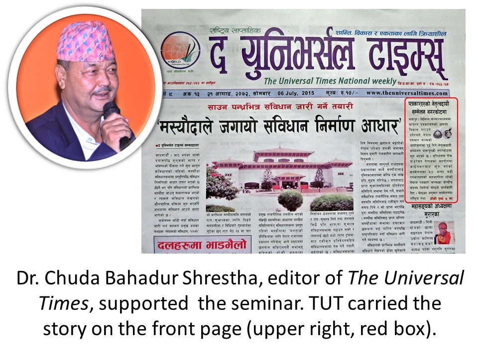 The Universal Times (TUT), a national weekly paper, surprised fellow journalists by distributing the paper on the morning of the last day of the seminar. On the front page was an article about the media conference itself.