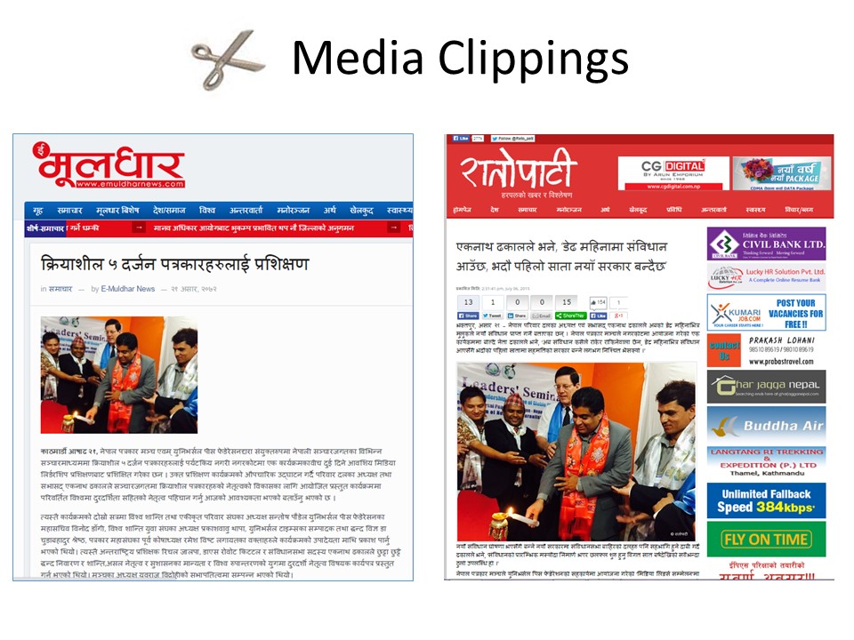 “The media educates a nation,” said Mr. Richell Jalipa, national lecturer for UPF-Nepal. He explained, “After finishing formal schooling people are educated by the media on a daily basis. They watch TV, turn on a radio, or pick up a newspaper.” Concluding his presentation Mr. Jalipa praised the media, saying, “Media leaders are patriots because they sacrifice and risk their lives exposing corruption and abuses in the government and business sectors.”