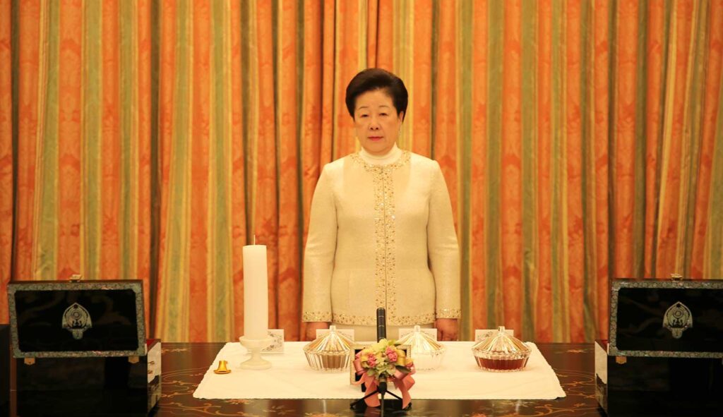 May all the children of our unification families all over the world realize that these holy items bestow your blessed grace and may they joyfully appreciate you. May we become children who do our best to fulfill our responsibilities so that your children, the 7.3 billion people, who will remain in your proud history—can be embraced within True Parents’ bosom.