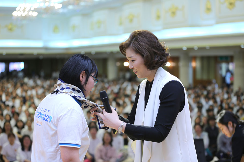 Regarding True Mother’s specific wishes for by 2020, Sun Jin Nim asked the audience what they felt the answer might be. A sister in the front answered “We have to be tribal messiahs;” Sun Jin Nim was impressed by the sister’s swift response. She mentioned we should think about True Parents’ great works over 52 years together, and that Mother is thinking about how to fulfill Father’s dream of One Family under God.
