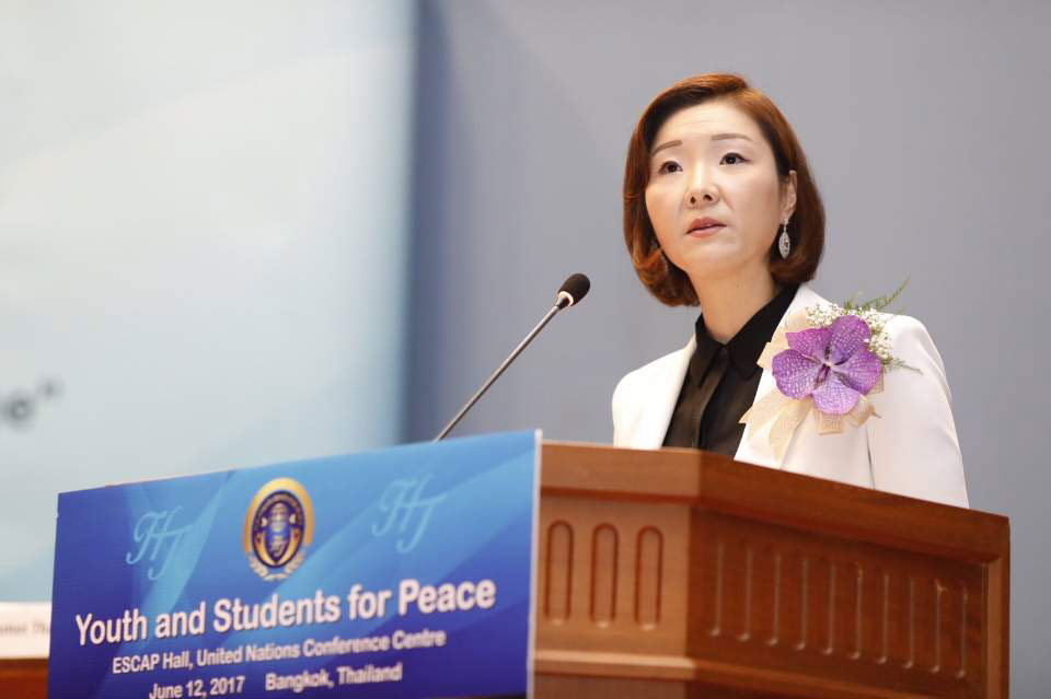 In February of this year, in Korea, with more than 1500 young people gathered from Korea, Japan and nations around the world, my mother launched the international association of Youth and Students for Peace. She called on the young people to become champions of peace and leaders who can bring about social transformation for the sake of sustainable peace.