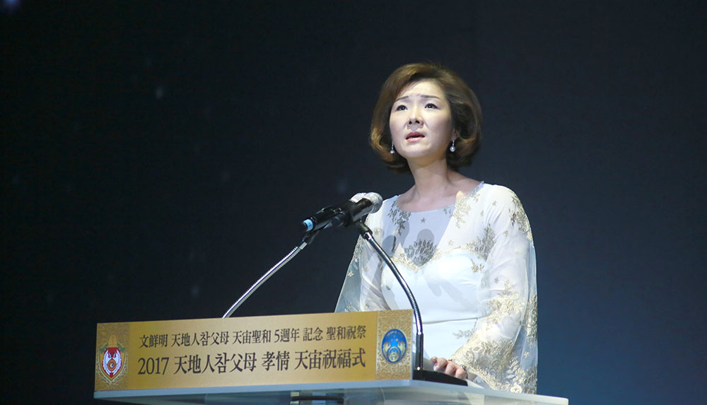 When we all become one, one with Heavenly Parent and True Parents, “Yearning for Those Days,” the song of God’s original homeland shall resound. And, wishing to return to the beginning of creation, His original dream of true joy, true love and true peace, as filial sons and daughters True Parent and Heavenly Parent, we pledge on this holy 5th anniversary Seong Hwa day that your dream will be realized on earth and in Heaven.