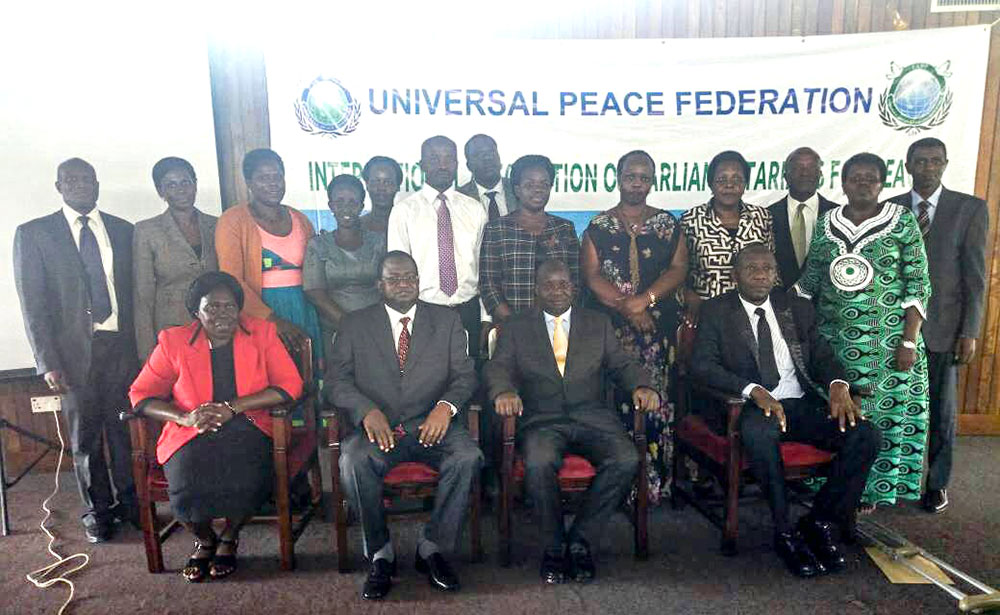 The occasion was graced by 21 current Members of Parliament, including Hon. Rev.Fr. Simon Lokodo, Minister of State for Ethics and Integrity, and Hon. Dr. Sam Lyomoki, Secretary General, Central Organization of Free Trade Unions-Uganda (COFTU) and Member of Parliament for workers. and 17 Signed the declaration. The Africa Regional Group Chairman Rev. Bakary Camara was represented by Rev. Frederick Wakhisi, the Secretary General Universal Peace Federation Kenya. was the main speaker and also read the founders address.