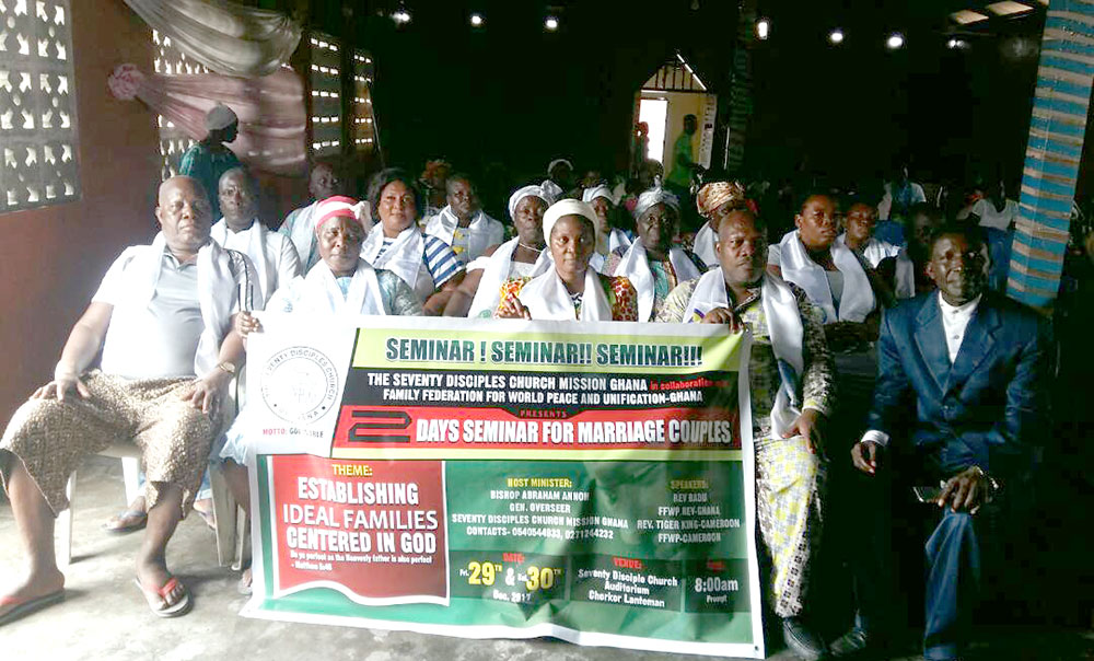 FFWPU Ghana team was invited to organize a two-day seminar with the members of a local church, the “70 Disciples Church” mission of Ghana, in Chorkor suburb of Accra, from December 29 to 30, 2017.