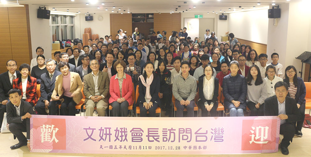 At the same time, Dr. Yeon Ah Moon came to Taiwan for the event organized by WFWP-Taiwan, so we invited her to speak to leaders and all members at night on December 28th. Around 140 members attended the gathering. Taiwan church leaders sang a song to welcome Yeon Ah Nim, and Shin Yuh Moon also sang two songs for all participants.