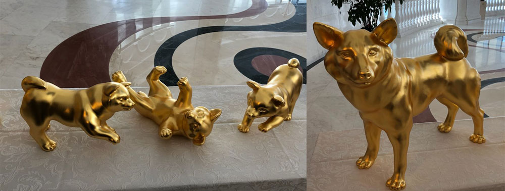 Dogs have especially strong Yang energy. That’s why they have dynamic and active characters. And the color gold indicates wealth and abundance.