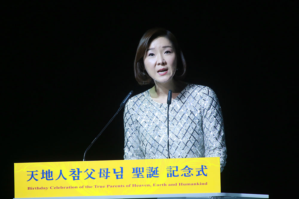 It is my special privilege and honor to share a few words with you today on this historic and special occasion as we gather to celebrate the birthday of our beloved True Parents of Heaven, Earth and Humankind, I first wish to thank Heavenly Parent and True Parents. Furthermore, as the daughter of True Parents, I would like to congratulate my parents, the source of my existence, on their birthday.