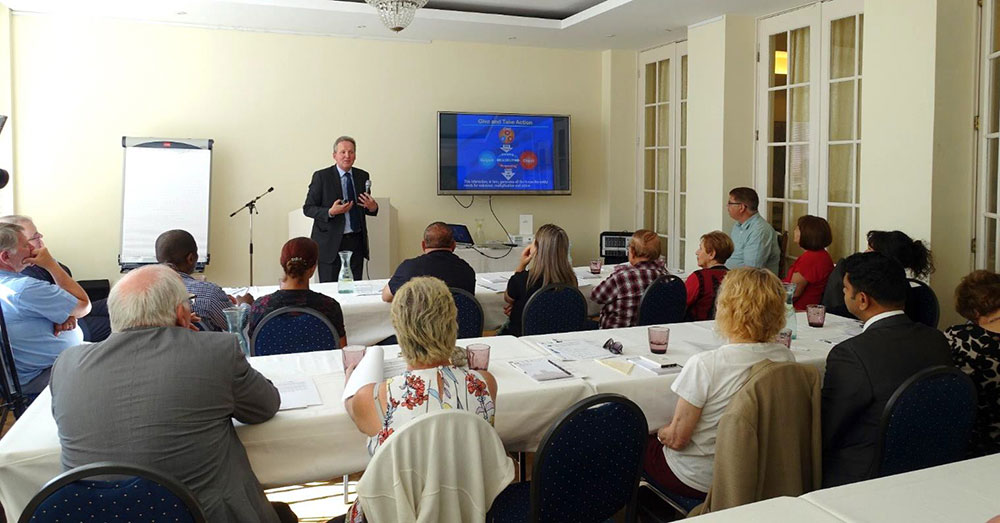25 participants – including staff – coming from 7 nations of Europe, the Middle East and Eurasia attended the two-day seminar that began on July 13 afternoon and ended on July 15 afternoon. Participants ranged from long-time Peace Ambassadors like Dr and Mrs Glaubach from Israel, to recent contacts of UPF like Pastor Sostha Muvuma and his wife, a Christian couple from Belgium. On Sunday morning six local Peace Ambassadors and guests were invited by UPF Netherlands to join the last two presentations.