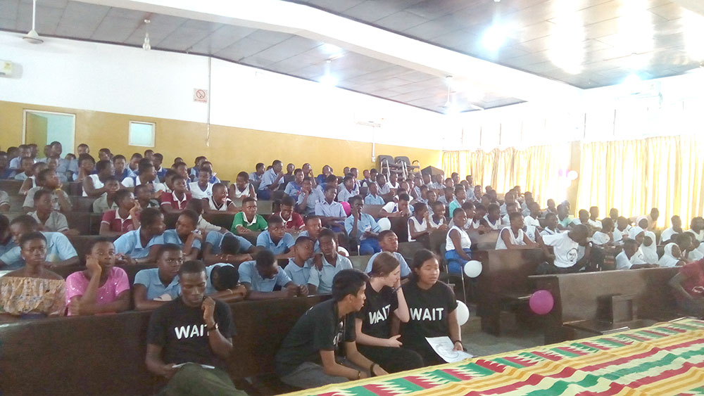 During the program, two main speakers made presentations and a cake was cut to officially launch WAIT organization in Ghana. The audience had the opportunity to watch a dance performance from the UK team. Students from two schools also performed sketches on teenage pregnancy.