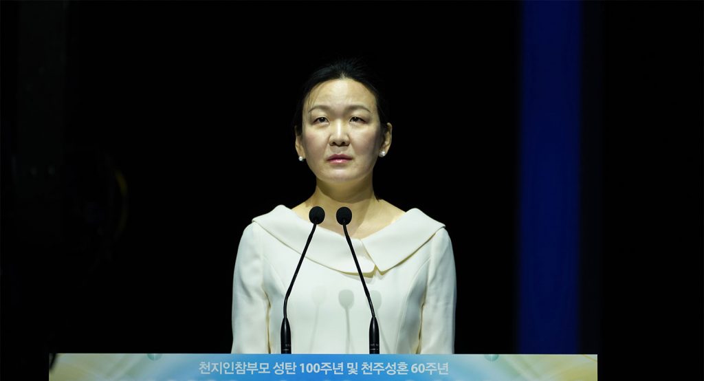 Yeon Ah Moon, Chair of the Universal Peace Federation offered the Commemorative Address for the 8th Anniversary of the Holy Ascension of Sun Myung Moon, the True Parent of Heaven, Earth and Humankind, on 7.17 by the Heavenly Calendar in the 8th Year of Cheon Il Guk (Sept. 4, 2020) at Jeongshim Peace World Center.