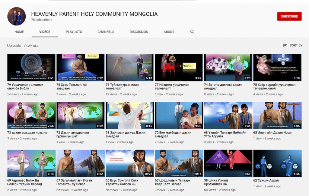 In order to enhancing our current educational materials, we have prepared over 150 videos for Divine Principle and other related studies in Mongolian language. We invite all the Mongolian speaking people all around the world to use this YouTube channel and bring the new word of Truth to all families and friends.