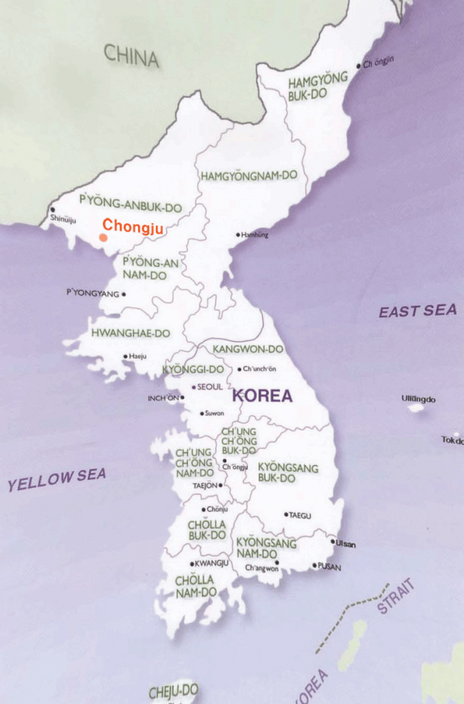 There were many famous people who emerged from Chongju county in North Pyong-an Province. Chongju is famous. The center of the independence movement was not Seoul. And Christianity was at the center of the struggle with Communism. Like many powerful generals on the front line of a struggle, many famous people emerged from Pyong-an Province.