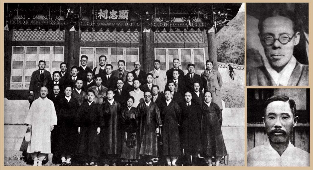 After the March 1919 independence uprising, Japan replaced its governor-general of Korea with Baron Saito Makoto, who quietly initiated a great upsurge in police presence, better intelligence-gathering and stricter control of the independence movement. Simultaneously, he conspicuously built more schools, allowed a great increase in civic groups and relaxed restrictions on non-threatening activities, such as Korean-language newspapers. Pictured above are some members of the Korean Language Society, formed as a result of that policy in December 1921. The Society published a journal, assisted needy scholars and produced a dictionary. Policies later changed, however. In late 1942, dozens of Korean Language Society members were arrested. Among them, lexicographer Lee Yun-jae (top right) and journalist Han Jin (bottom right) died in prison before Korea’s liberation in 1945.