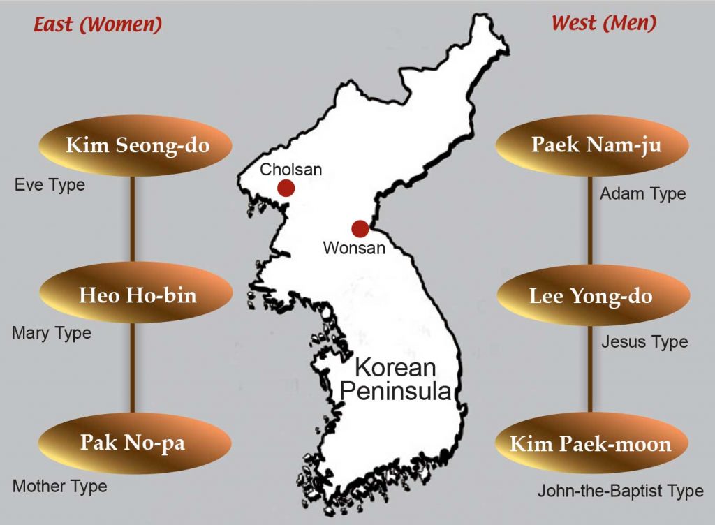 The movement in the west transferred to Mrs. Heo Ho-bin and the movement in the east came under Mr. Lee Yong-do. Paek Nam-ju had been the Adam-figure, but because of Paek’s failure in fulfilling his responsibility, Pastor Lee came onstage. Pastor Lee’s church was somewhat different from Mrs. Heo’s. Originally, they were united. For a while, they cooperated, but then they separated. What did Pastor Lee do? He established the Jesus Church.