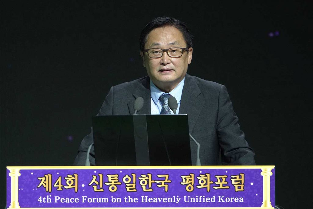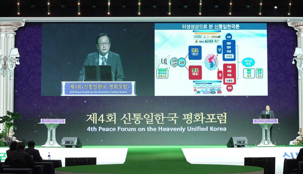 2. ★ The last Peace Forum dealt with the conflict between Korean liberal democracy and Juche socialism, and between idealism and materialism, which are the roots of the ideologies of the South and the North. So the spiritual and material, body and mind, can be unified into one through true love. That true love is none other than shimjeong. As such, the only way to fundamentally resolve the conflict between the two regimes is to find it in the heart and through an incident of shimjeong. The Heavenly Unified Korea Theory refers to a God-oriented, two-wing reunification movement that aims to fundamentally unify South and North, left and right wing, centering on the axis of heart. All issues such as the historical issues of the North-South Korean conflict, ideological issues, peace talks, human liberation, and inter-Korean conflicts can be fundamentally resolved through the central axis of the heart and event of shimjeong. Here, “incident of heart” relates to the life of true love and the events of shimjeong occasioned by Sun Myung Moon and Hak Ja Han, who have been campaigning for peace throughout their lives. Here, you can hear about the only alternative to peaceful reunification between the two Koreas that you cannot hear on any YouTube channel, and in that sense, you are fortunate people.