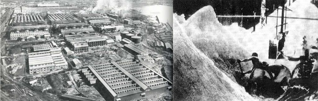 An inside and outside views of the Chosun Nitrogen Fertilizer Company’s Hungnam plant