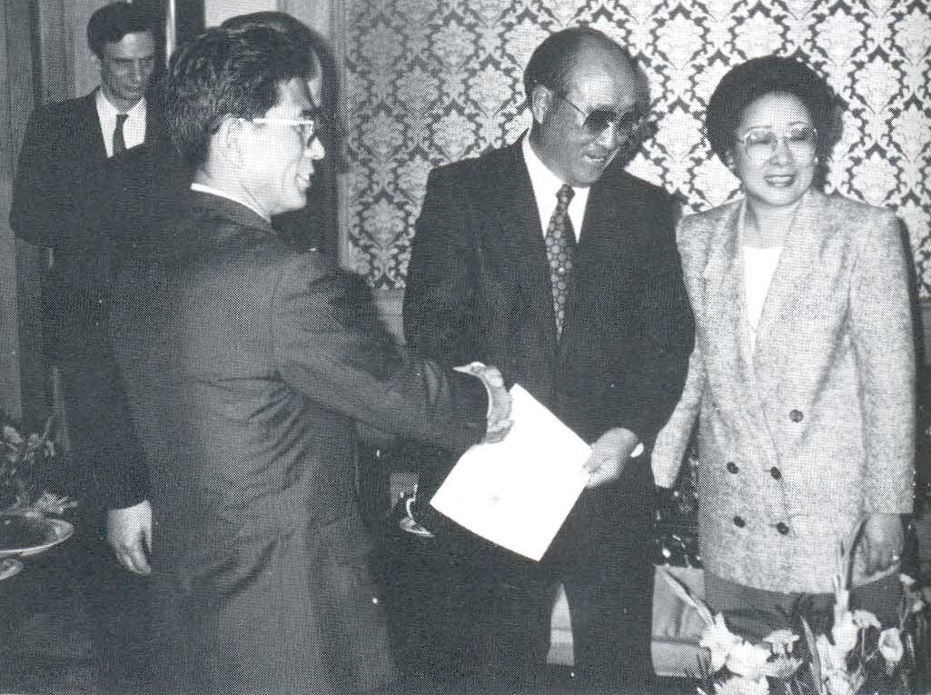 We flew to Hong Kong on November 29, and were joined by Dr. and Mrs. Pak, Mr. Kamiyama and Mr. Terada. We spent one night in Hong Kong and went to Beijing on November 30 where we met the other brothers and sisters at the airport who were mobilized to travel with Father. However, at the last moment the North Korean government cut everyone off the list except Father and Mother, Dr. and Mrs. Pak, myself, two East Garden staff—Mr. Yoon and Mrs. McDevitt—and Thomas Hwang, a Korean brother who has been stationed in China for the past six years. There was one more gentleman from the World Bank, in charge of the Asian section, Dr. Robert Lee. That made nine altogether.