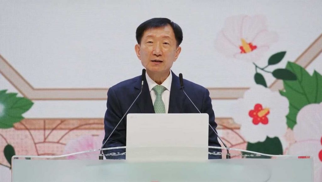 Now we will take a moment to congratulate Ms. Lee Jeong-ah on stage. Please welcome Ms. Lee Jung-ah to the podium with warm applause. Thank you!