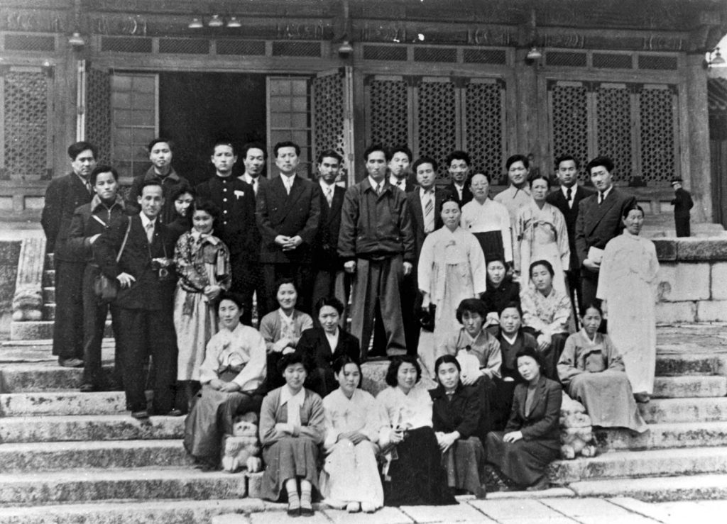 True Father with members at (the rebuilt) Chang Gyeong Palace on March 31, 1955