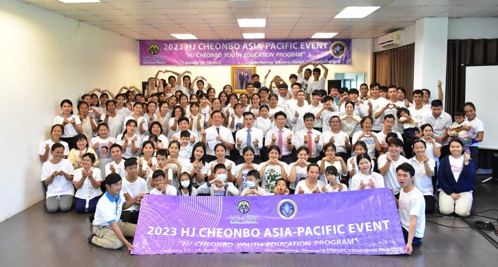 “HJ CheonBo Youth Education Program” is the theme of 2023 HJ CheonBo Asia-Pacific Event held on January 13-15, 2023 in Mon-Raming, Maetang District, Chiang Mai Province, Thailand, organized by the International Association of Youth and Students for Peace-Thailand and Family Federation for World Peace-Thailand.