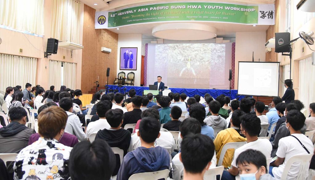 After two consecutive years of virtual events, the Heavenly Asia Pacific region, spearheaded by the Blessed Children Department, finally culminated its annual 12th Heavenly Asia Pacific Sung Hwa Youth Workshop from December 26, 2022 to January 1, 2023 in the FFWPU Philippines Headquarters, Manila, Philippines. With the theme: “Becoming the Light of the World with a Filial Heart for Heaven,” the first hybrid workshop served as an avenue for blessed children to learn more about the value of their identity and the Blessing, and to develop their life of faith and heart of hyojeong toward Heavenly Parent and True Parents.