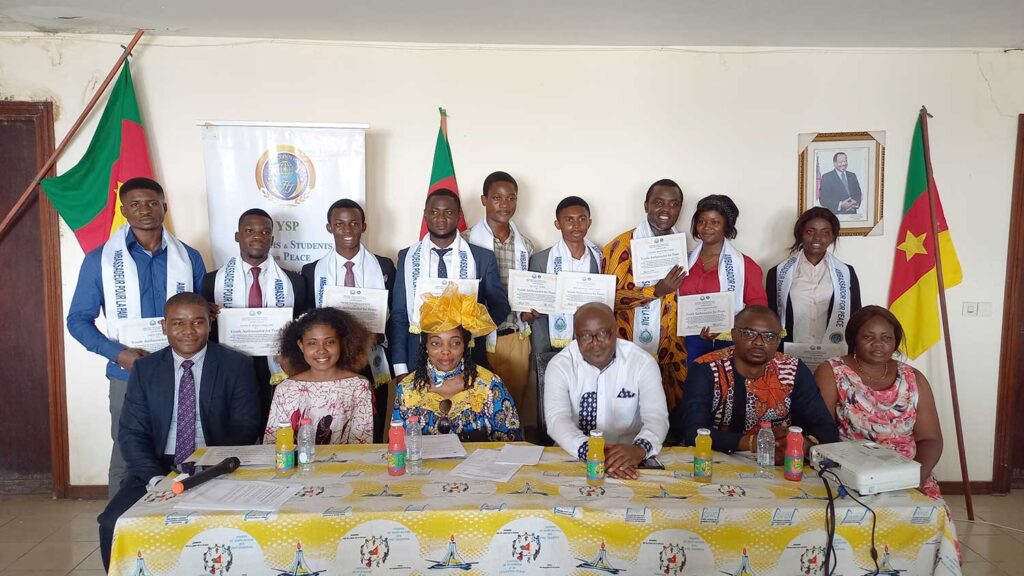 The delegate of Wouri, Mr. Ngeund Lazer congratulated the peace ambassadors, and spoke a message of hope asking them to fulfill the responsibility they have and make the best out of it. To conclude this ceremony, YSP signed an MOU with two other associations, ABSED and GREEN WORLD associations. Both these organizations are important associations to promote peace and support the UN sustainable development goals.