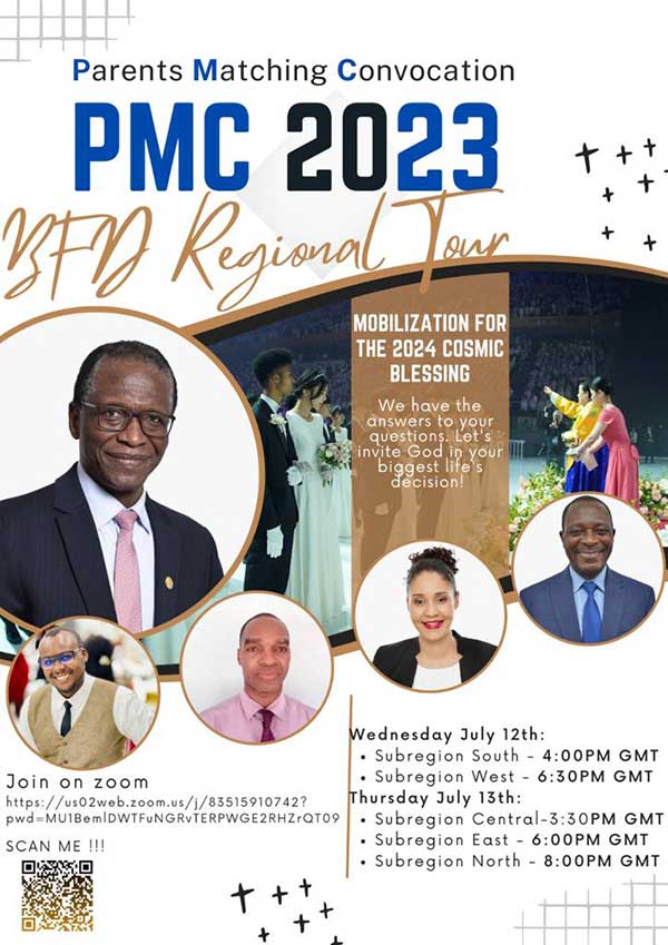 With this in mind, and to mobilize all the potential candidates for the Cosmic Blessing 2024, we conducted a two-day Regional Online Parents Matching Convocation Orientation on July 12 and 13, 2023. And more than 170 people participated through Zoom from different locations in Africa.
