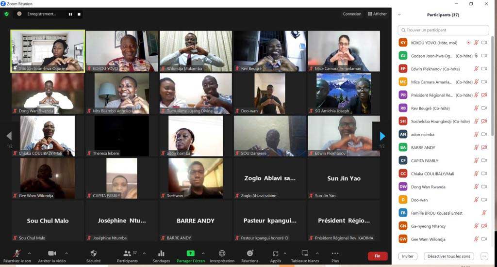 To this end, illustrated by pictures, the Regional President of Africa, Rev. Jean Pierre Kadima, the Regional Vice President, Mrs. Mica Amalaman, together with the Regional Director of the Blessed Family Department and the Regional Youth Coordinator made their contribution with their lectures and guidance.