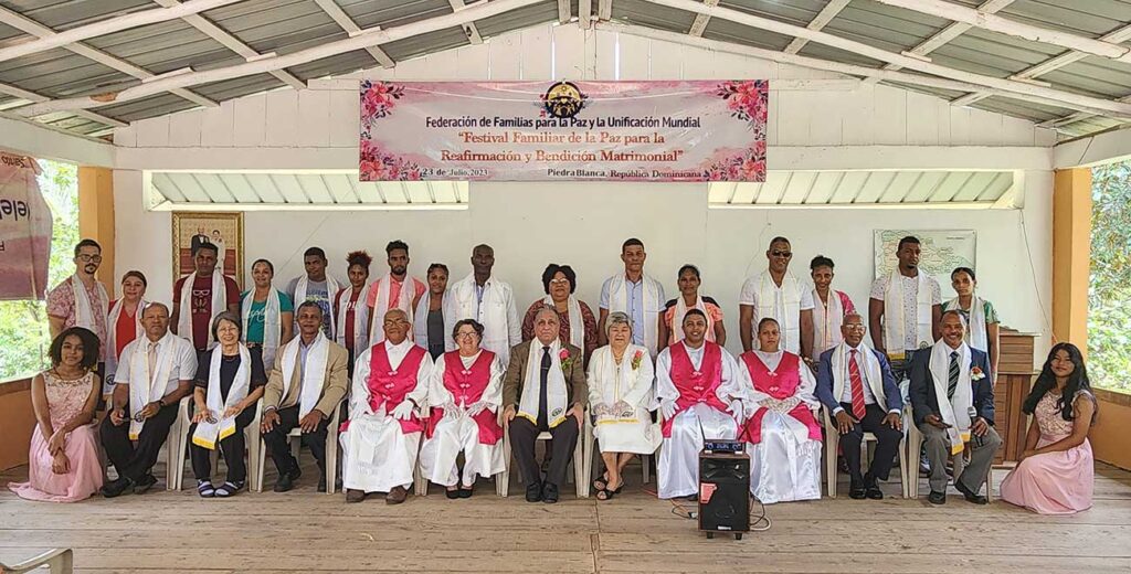 On July 23rd, 2023, on the day to start special 40 days of devotion and witnessing in preparation to celebrate the 11th anniversary of the Holy Ascension of True Father into the spiritual world, our Heavenly Tribal Messiah Department conducted a blessing ceremony with the participation of 40 people and 8 couples. This event was held at our training center, the Armonía y Paz Farm (harmony, and peace farm) of the holy community of the Dominican Republic.