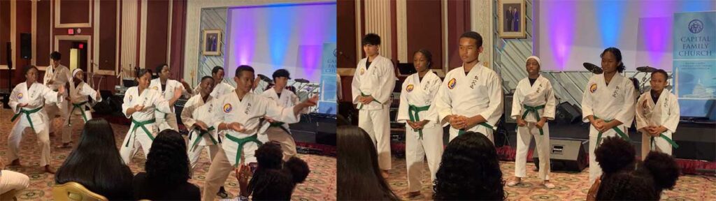 After the inspiring sermon by President Nitro, Master Werlo shared his message. “Tongil Moo Do helped and guided me to meet Heavenly Parent, True Parents, and build my character and family” “Most practitioners were not church members, but we had the chance to introduce True Parents’ teachings to them, and they were able to offer a full bow to True Parents through teaching Tongil Moo Do,” says Master Werlo.