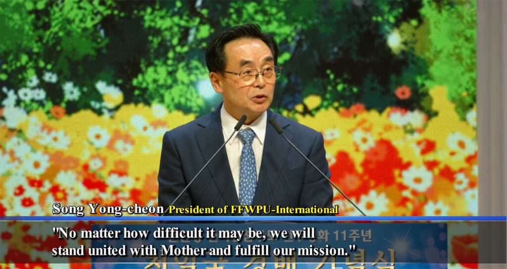 First of all, I would like to sincerely thank all Cheon Il Guk leaders and the blessed families who have gathered with heartfelt sincerity from various corners of the world out of love and longing for True Father, to attend the Commemorative Pledge Service marking the 11th Anniversary of True Father’s Holy Ascension.