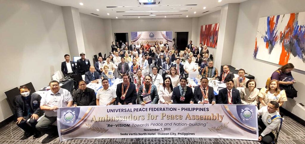 The Ambassadors for Peace Assembly, held on November 7, 2023, at Seda Vertis North Hotel in Quezon City, Philippines, was a significant event organized by the Universal Peace Federation (UPF) – Philippines, uniting 95 attendees from diverse leadership roles. Themed “Re-vision: Towards Peace and Nation-building,” the assembly emphasized the shared commitment to global peace.
