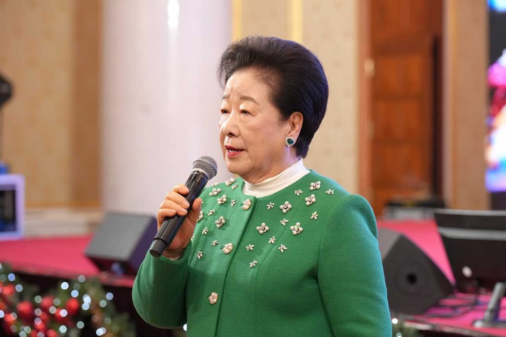 The song I asked the True Family to sing today comes from the time when I was a young girl with many dreams and decided to follow the path of True Parents. There followed a period of fifty or sixty years during which period we conducted activities for the global providence, centered on the United States. Notably, when we celebrated Christmas, I would think of how my unspoken, difficult circumstances mirrored the unspoken circumstances of Jesus’ heart. I wonder why Lee Mi-ja’s song particularly touched my heart—why this song came to mind after sixty years, having returned to Korea and begun the providence here.