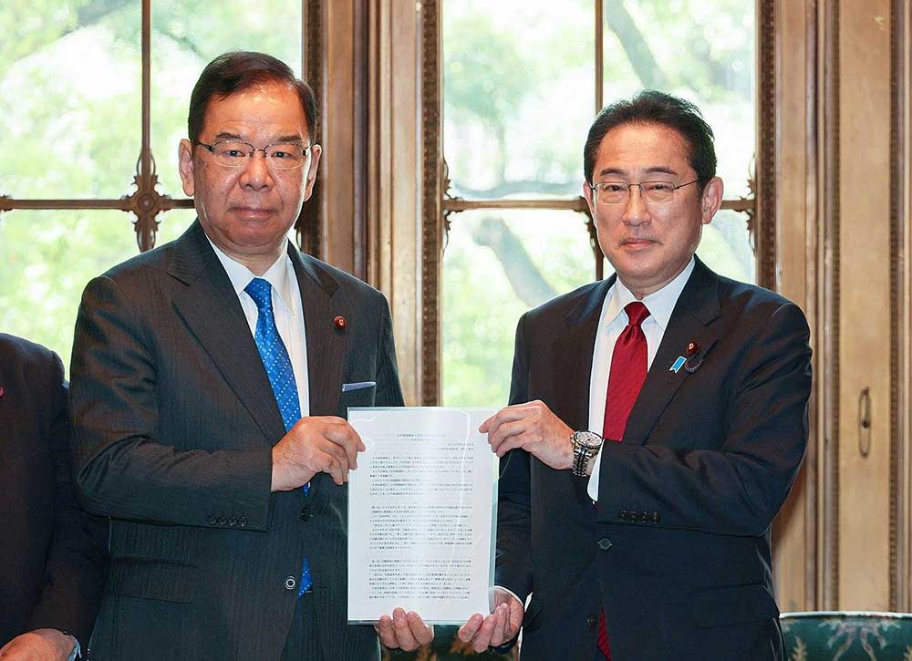 Featured image above: Fumio Kishida and opposition communist Kazuo Shii. In the Japanese Diet building 30th March 2020, Prime Minister Fumio Kishida receiving the Japanese Communist Party’s proposals regarding Japan-China relations from Kazuo Shii, chairman of the Japanese Communist Party (JPC). Photo: 首相官邸ホームページ License: CC Attr 4.0 Int. Cropped