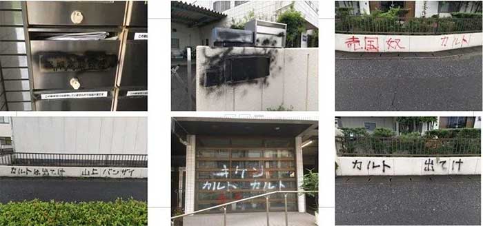 Widespread discrimination by authorities made situation much worse: Graffiti sprayed on Family Federation properties throughout Japan. Photo: FFWPU